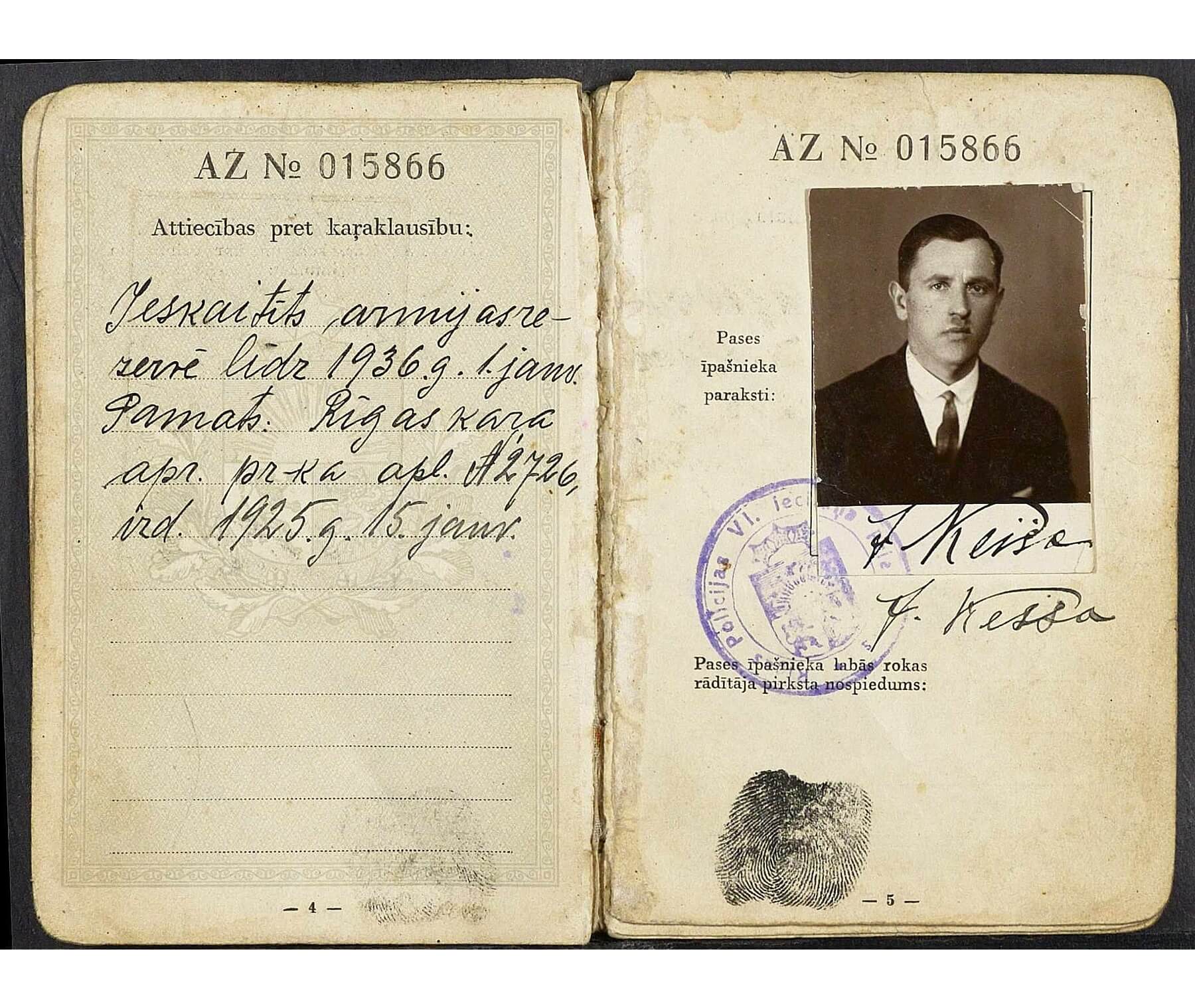Примеры разворотов паспортной книги и латвийского паспорта (источник – FamilySearch):