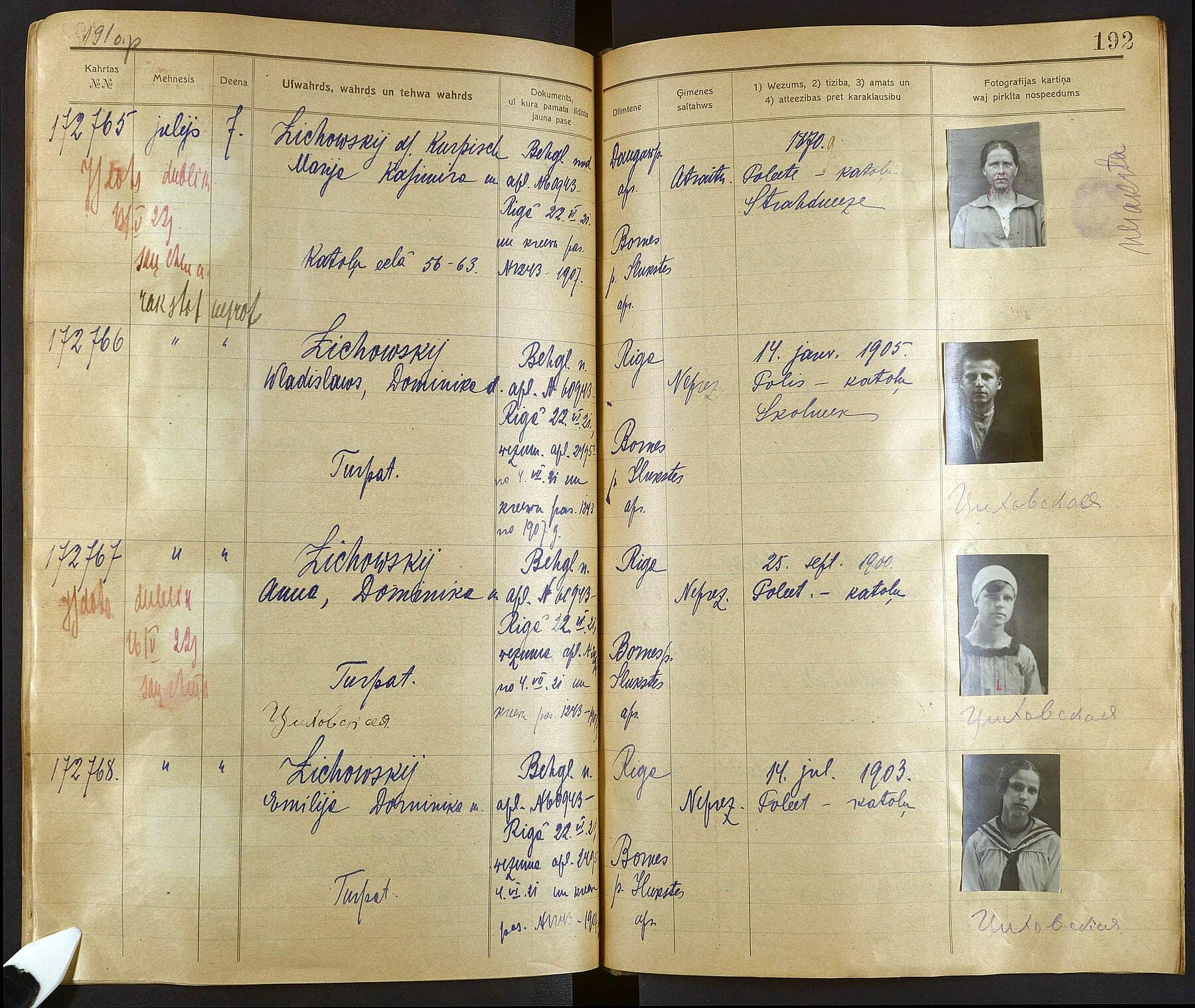 Примеры разворотов паспортной книги и латвийского паспорта (источник – FamilySearch):